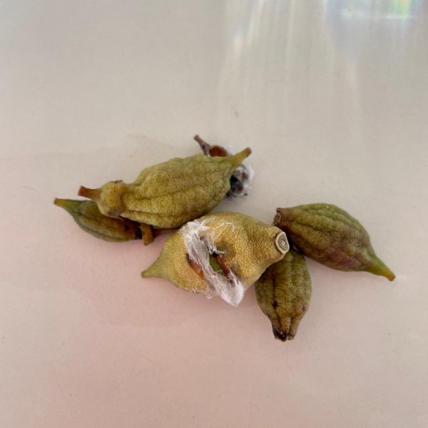 Hatte ich neulich noch von Schädlingen an Zimmerpflanzen und im Winterquartier gesprochen, kann ich euch heute direkt einen aktuellen Fund zeigen. Unser Zitronenbaum überwintert immer in einem kühlen, ausreichend hellen Kellerraum. Bislang hatte ich noch nie Schädlinge bemerkt. Oft wirft der Zitronenbaum im Winterquartier ein paar kleine, nicht fertig entwickelte Früchte ab, was nicht schlimm ist. Doch dieses Mal habe ich kleine Gespinste entdeckt und noch dieses hier: