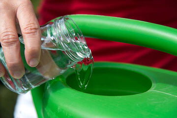Füllen Sie die Kanne mit Wasser auf und verrühren Sie die Lösung