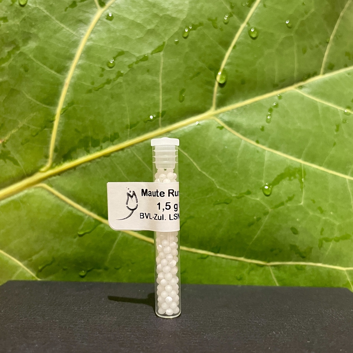 Maute Rundum® ist als Pflanzenstärkungsmittel gemäß § 45 PflSChG genehmigt beim BVL (Bundesamt für Verbraucherschutz und Lebensmittelsicherheit). Es wird in einer deutschen Apotheke exklusiv für uns hergestellt. Zusammensetzung: Homöopathisch-dynamisiertes Einzelmittel, Saccharose Globuli, Extrakt eines ungiftigen Rautengewächses.